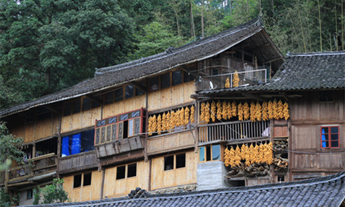 Dopo pranzo, esplorerete il villaggio in stile Miao (uno dei 56 gruppi etnici della Cina). Il villaggio Miao di Langde, che conta circa 100 famiglie, si distingue dagli altri villaggi cinesi convenzionali per le sue case su palafitte, le danze Miao e gli squisiti abiti lunghi. Immerso tra le montagne, il villaggio di Langde Miao si affaccia su un ruscello lucido, che fornisce agli abitanti del villaggio l'acqua per l'uso quotidiano. Quando si entra nel villaggio, si viene accolti da questi ospitali abitanti in abiti tradizionali Miao che intonano belle canzoni e servono vini aromatici. È interessante notare che gli abitanti del Villaggio Langde Miao accolgono gli ospiti nel loro villaggio fermandoli più di una volta. Più volte vi fermano, più siete benvenuti. Quindi, se venite fermati da questi gentili abitanti del villaggio, non prendetelo come un comportamento offensivo, ma accettate questa caratteristica cerimonia di benvenuto. Dopo le attività, siete liberi di fare una passeggiata nel villaggio. Ogni volta che passerete davanti a una casa su palafitte, sarete accolti con un caloroso benvenuto all'interno, dove potrete osservare da vicino l'ambiente interno della residenza Miao.